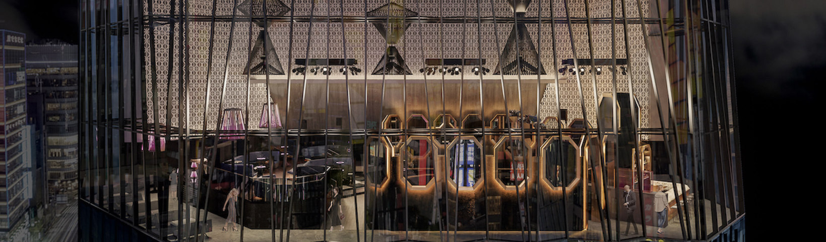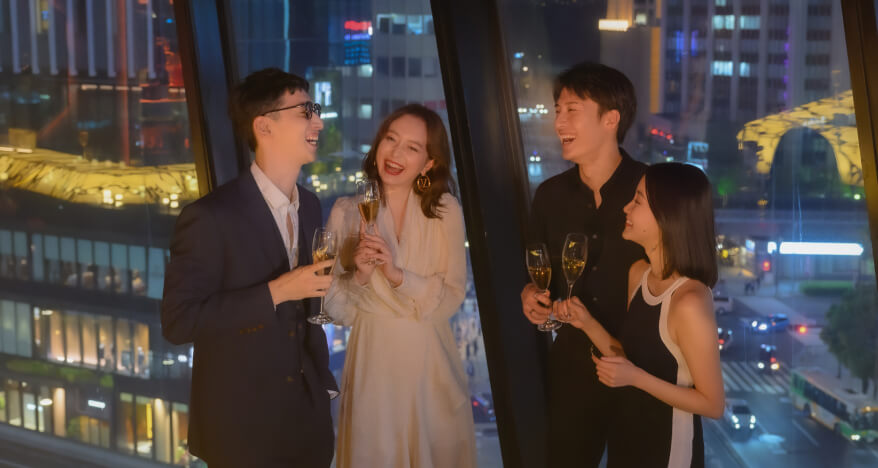 ガラス張りのバーラウンジ